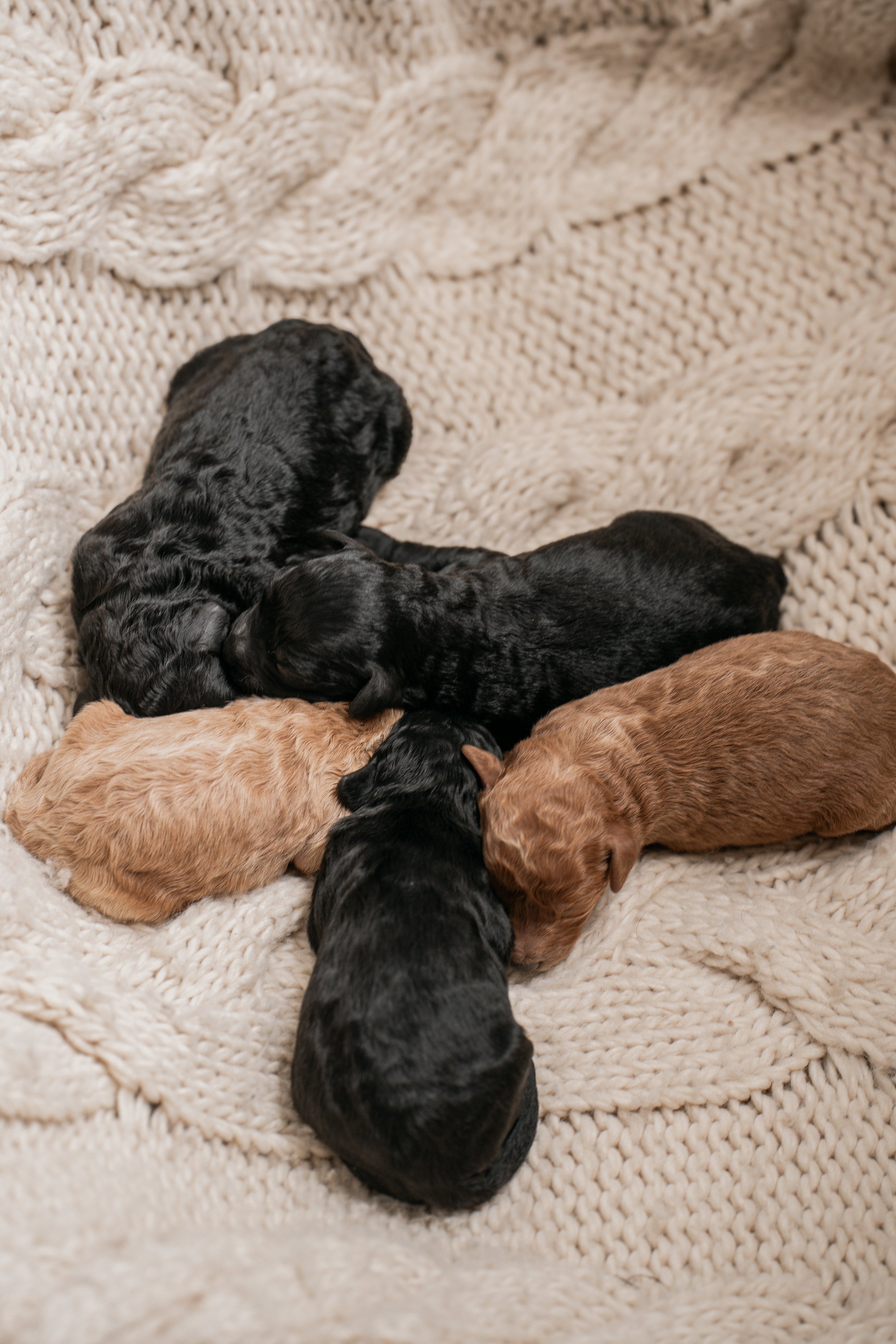 Emory and Parker had a beautiful litter of five miniature Goldendoodle puppies on 3-12-2026. These babies will mature to 15-20 pound at their full adult weight, and will be non-shedding and hypoallergenic. We are accepting reservations now!